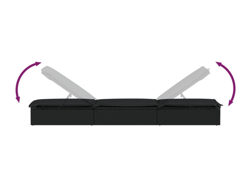 Chaise longue 1 pce avec coussin noir 201x55x62cm résine tressée 50428NUTF