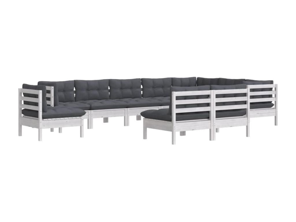 Salon de jardin 10 pcs avec coussins blanc bois de pin massif 16840DLLJ